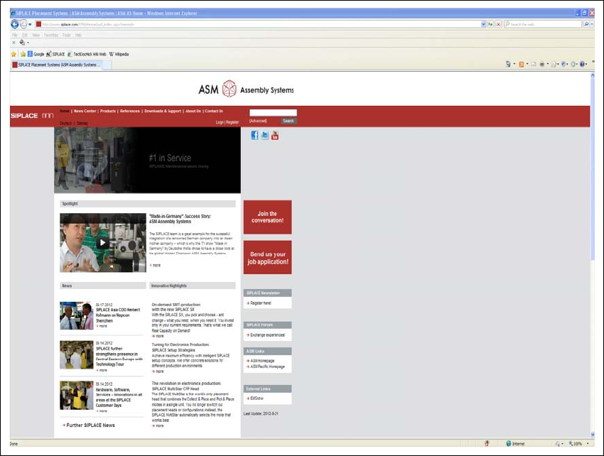 我们已在互联网上建立了公司的网站。请登录我们的 SIPLACE 主页: