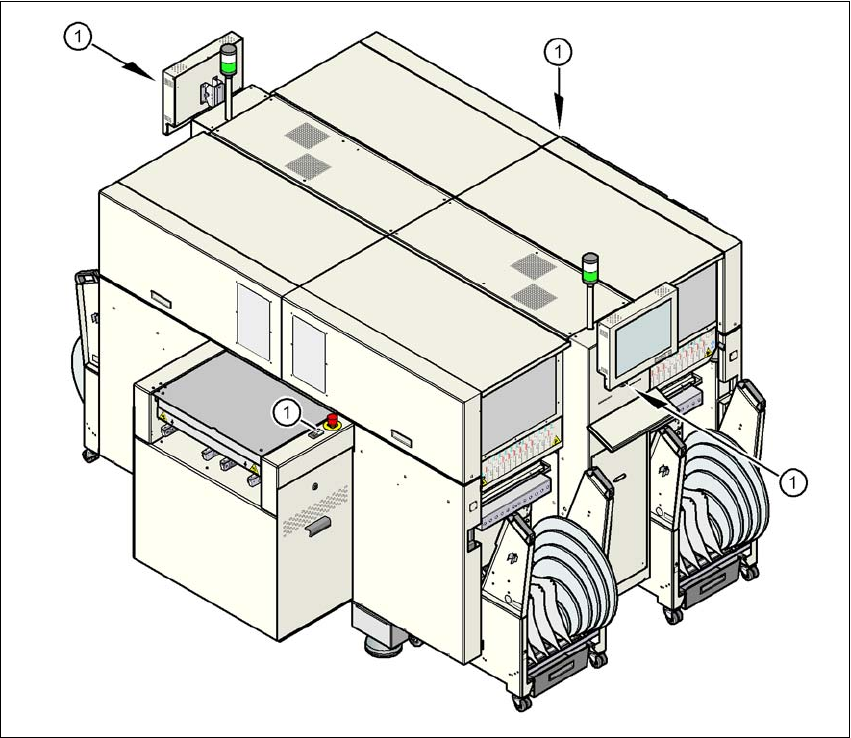 (1) 贴片机上的 Start (启动)按钮 (白色)