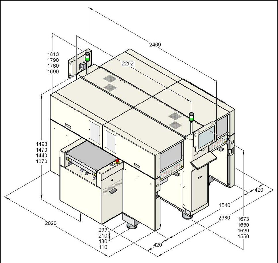 贴片机 (贴片机主体)的尺寸 (毫米)