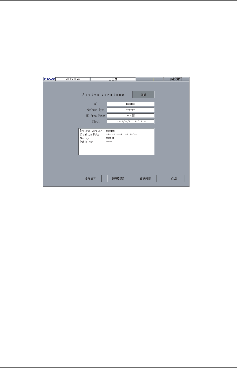選擇在觸摸屏的左上[FUJI]鍵顯示軟體版本的對話框。選擇[詳細]鍵顯示諸如 Private