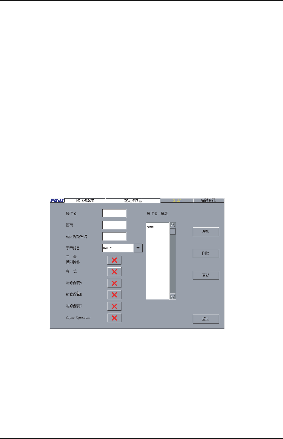 此選擇[刪除]鍵,相應的操作者名被刪除。