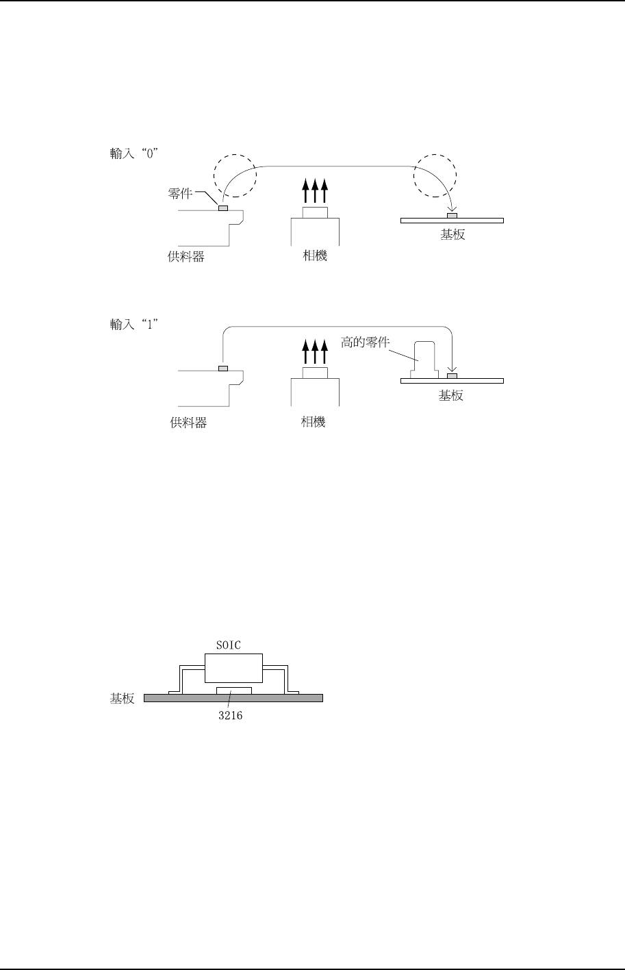 如下圖那樣貼裝的話,在貼裝 3216 時發生錯誤,若先貼裝 SOIC,則不能貼裝 3216。