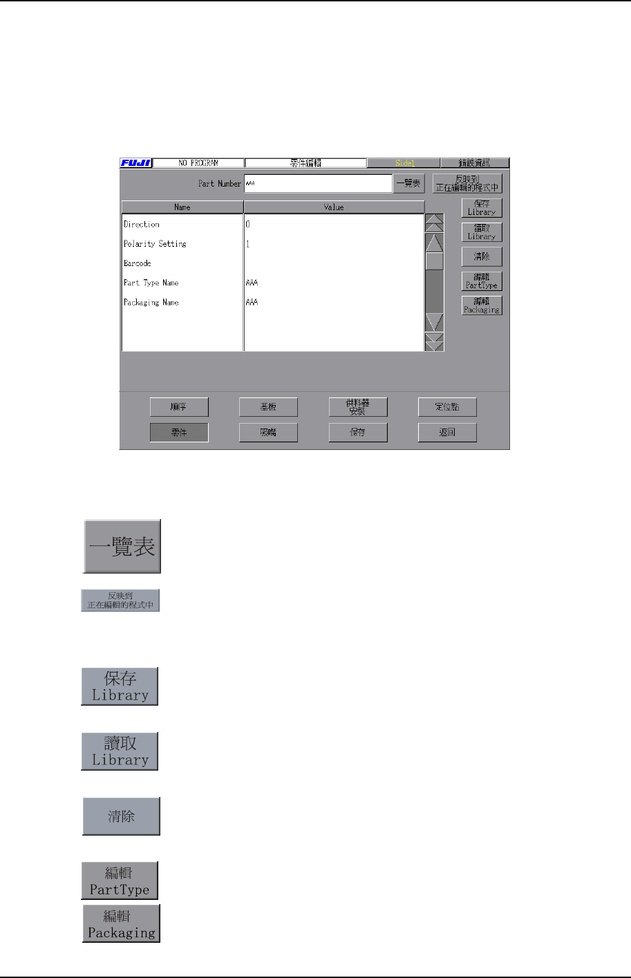 零件編輯器用於設定零件、供應方法的資訊。零件資訊分為 3 種 (Part Number,Part