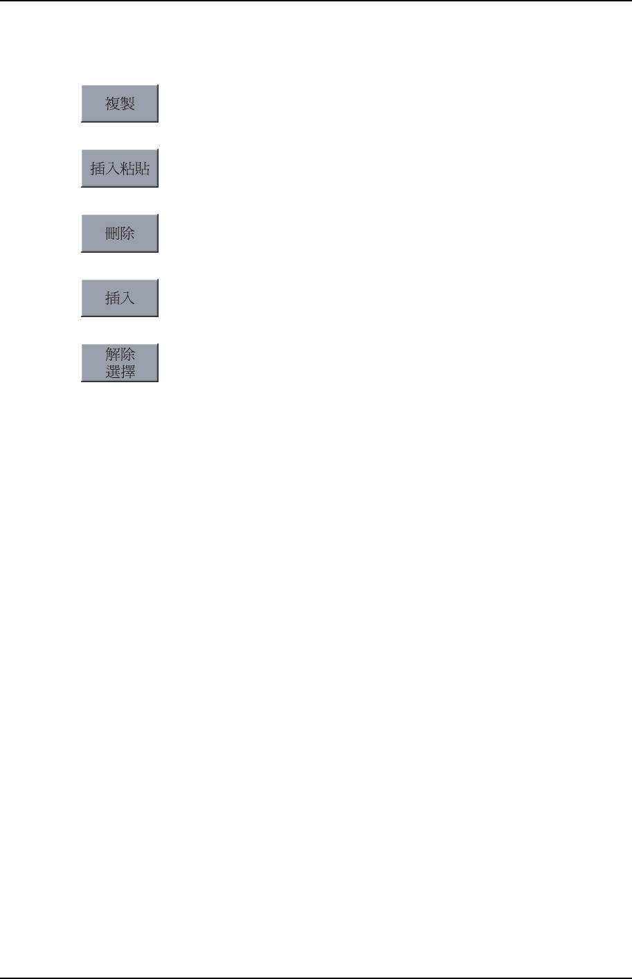 以下所示按鍵是對於位於畫面左側領域所選擇的行進行處理: