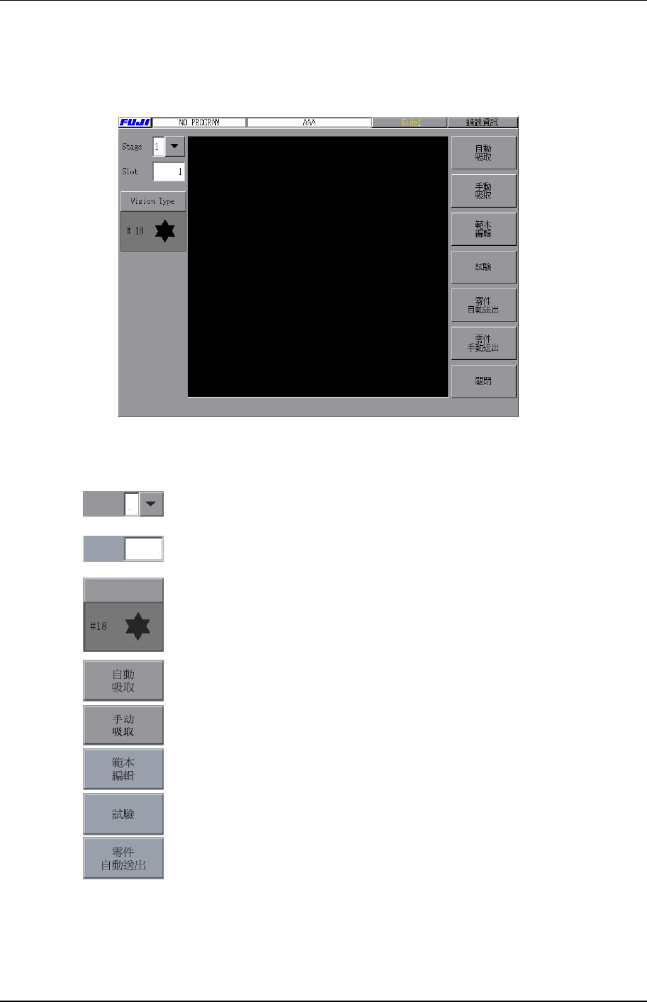 7. 選擇畫面上的[自動吸取]後按下啟動按鈕,機器按照畫面左上部所指定的Stage 的Slot