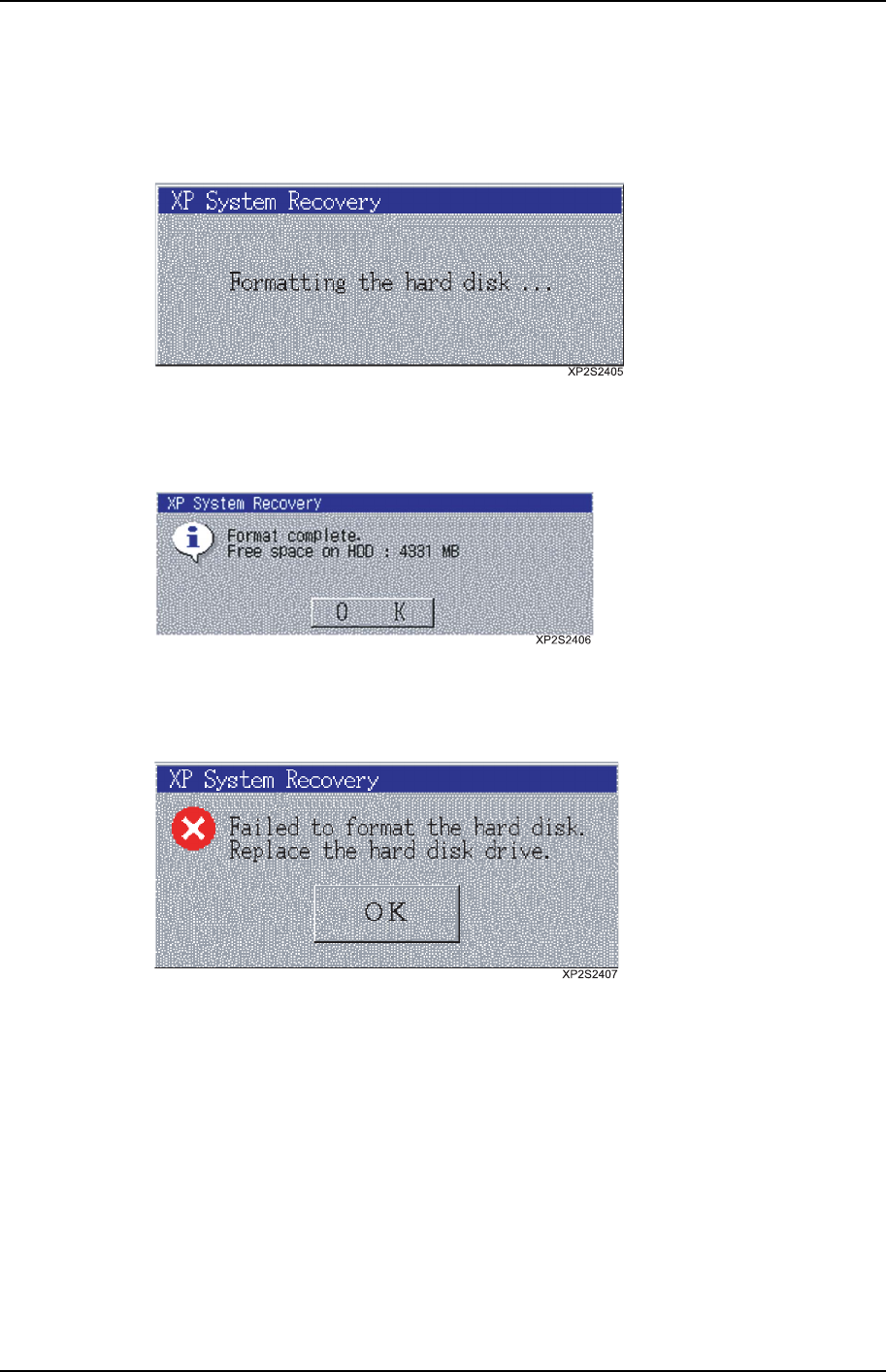 6. 如果格式化失敗,將會 顯示下面的對話框。按[OK]鍵,將 XP 機器關機。