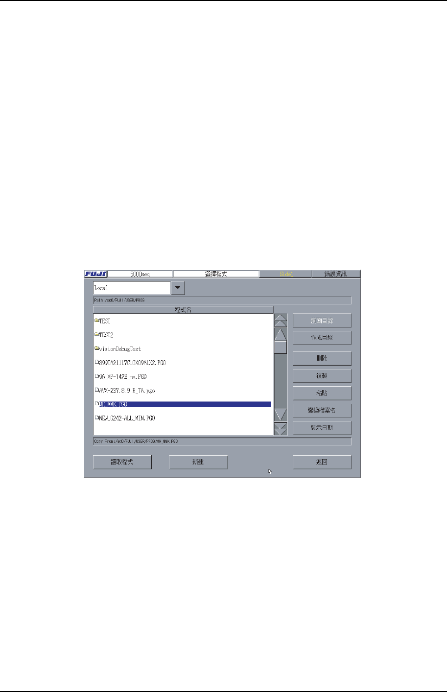1. 打開[主畫面],依次選擇[生產]、[讀取程 式]鍵,存放在機器的硬碟或是軟碟上的
