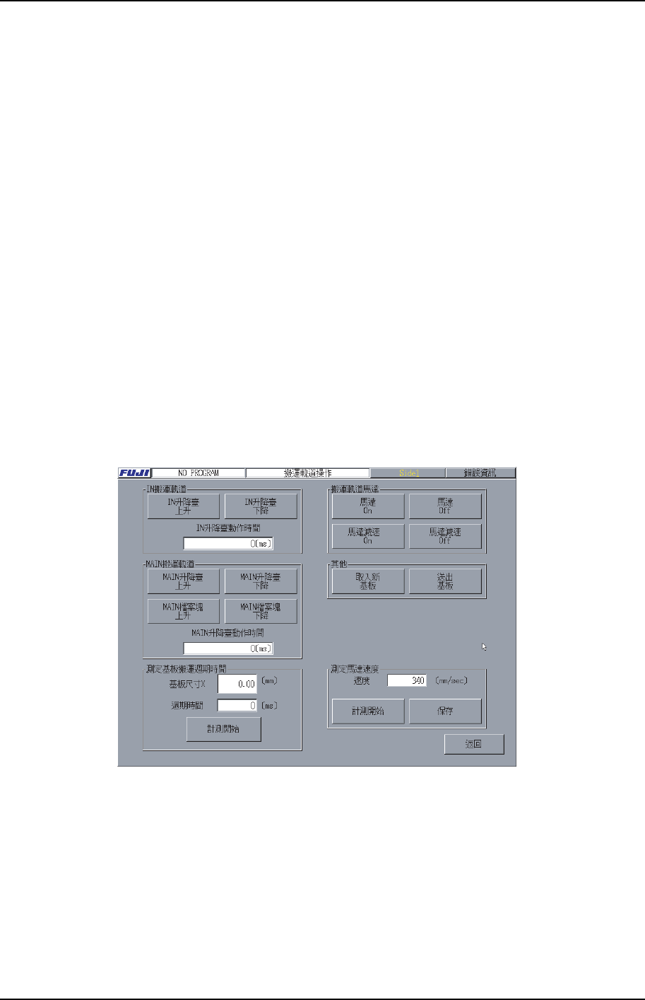 出動作。在換線時如要檢查搬運軌道寬度 、感測器的動作狀態、或是送出有缺陷的基板