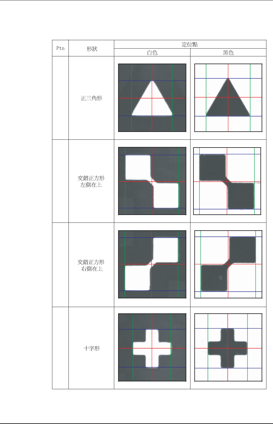 第 2 部第 2 章 定位點編輯功能 Edition 1.0 2-2-3 XP-142E 系統手冊 2.3 定位點位置的設定 使用滑鼠拖動卡尺線, 與定位點的外形相吻合設定中心。 下面說明各種定位點與卡尺線 相吻合的方法。 0 1 2 3 XP1S2151T