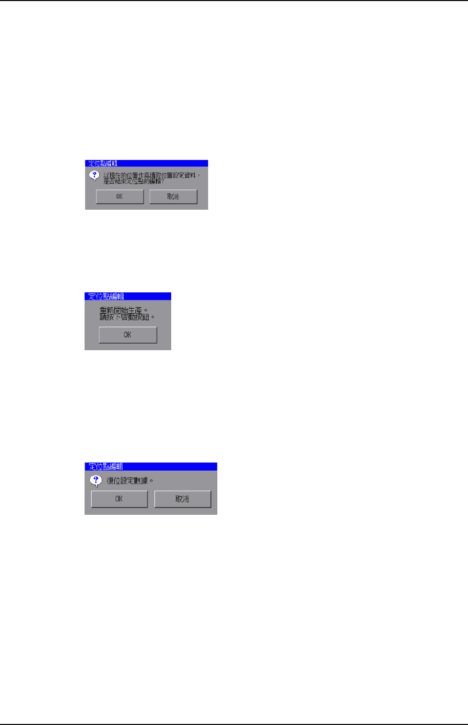 在定位點編輯畫面上按下[復位]鍵,螢幕上將顯示出如下的對話框。按下[OK]鍵,卡尺