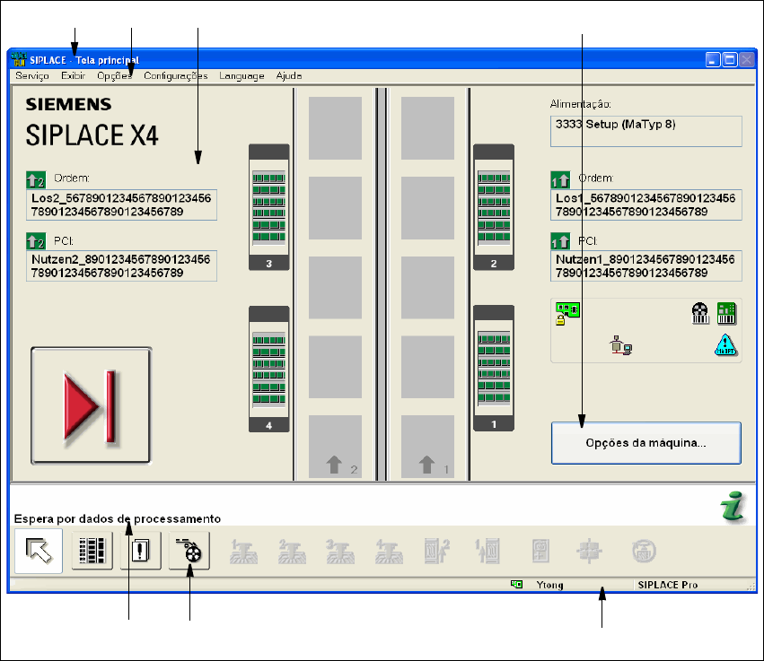 Fig. 3.2 - 1 Componentes da interface de usuário (Exemplo: Tela principal SIPLACE X4)