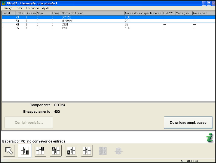 alimentador não recebe de SIPLACE Pro o valor de amplitude do passo atual.