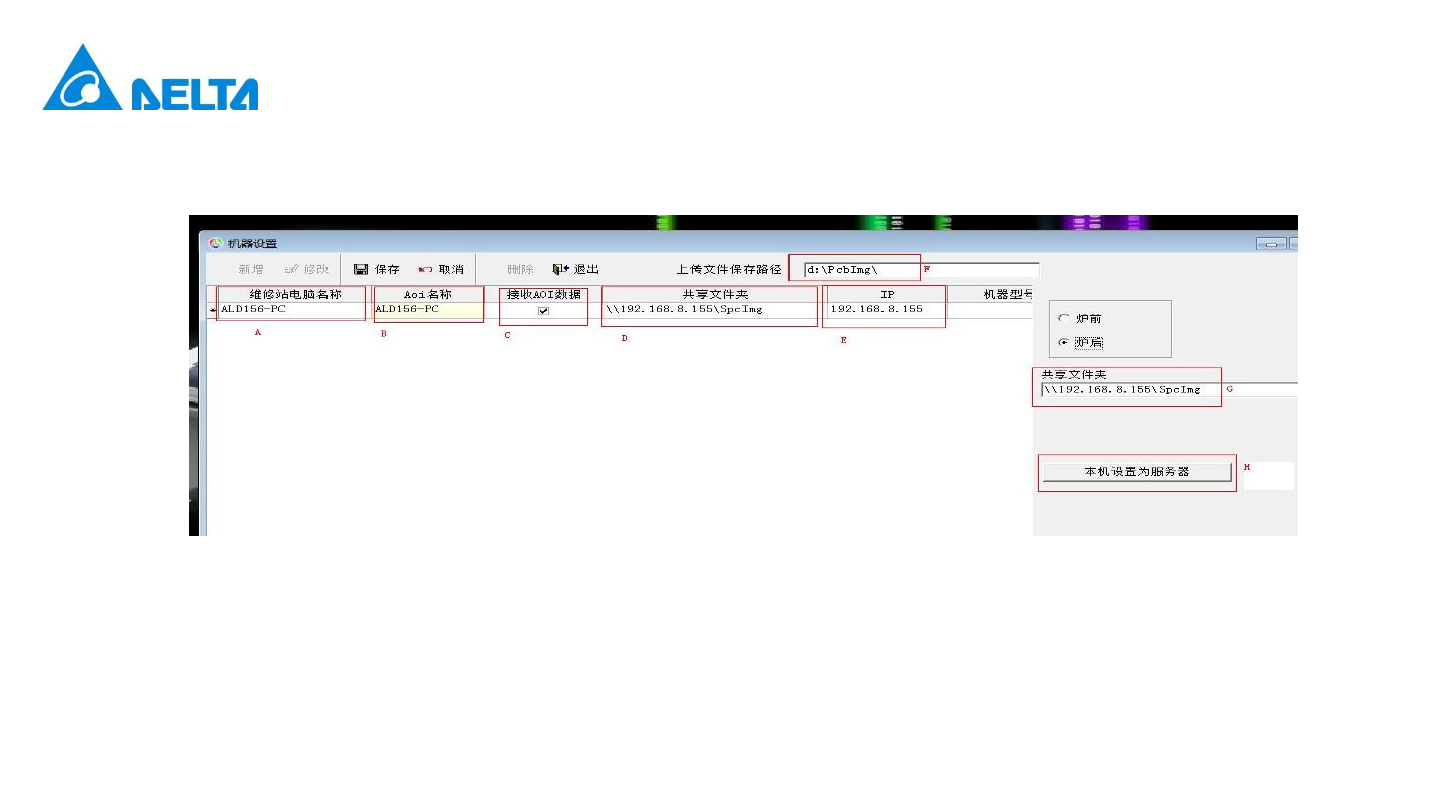 A和B填写好名称就可以了,现在是直接在AOI上查看NG的,服务器是直接在AOI上获取数据,所以维修站电脑名称填写