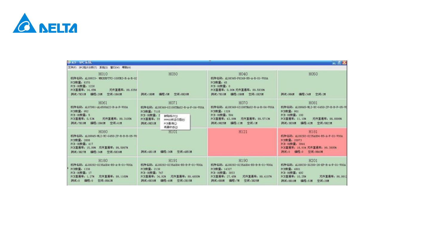 Delta Confidential 架設方法 服務器和 AOI 设备設置 S tep5: 设置 OK 后关闭当前 SPC, 重新打开 , 会有如下图片 : 连接多少台 AOI ,就有多少个信息块,其中绿色代表连接正常,红色連接異常 . 15