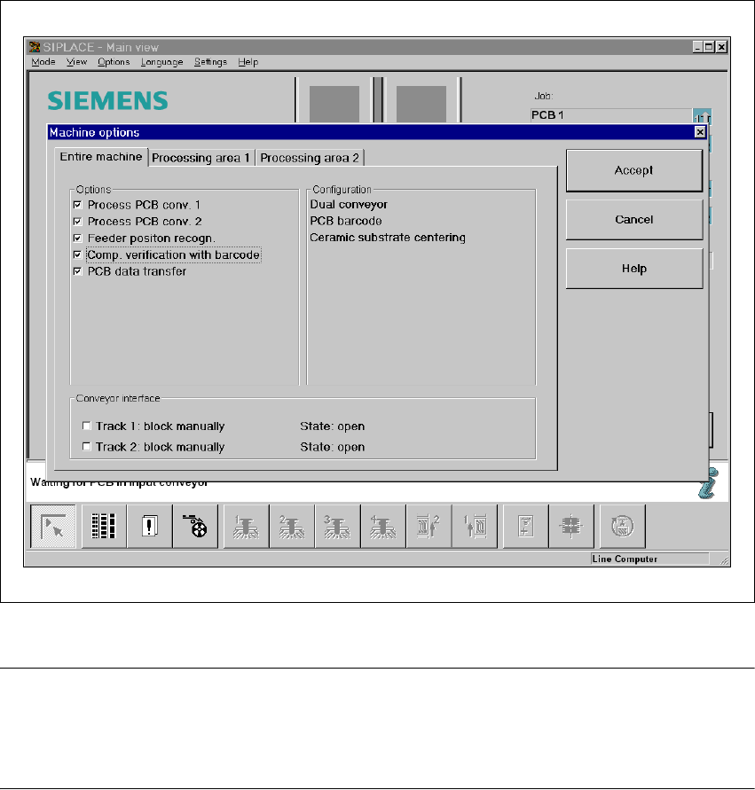 User Manual SIPLACE HS-50 5 Station extensions Software Vers ion SR.50x.xx 01/2006 US Edition 5.2 Component b arcode 149 Options in t he event of an illegibl e barcode 5 Æ Deacti vate the ref ill check fr om the Mac hine…