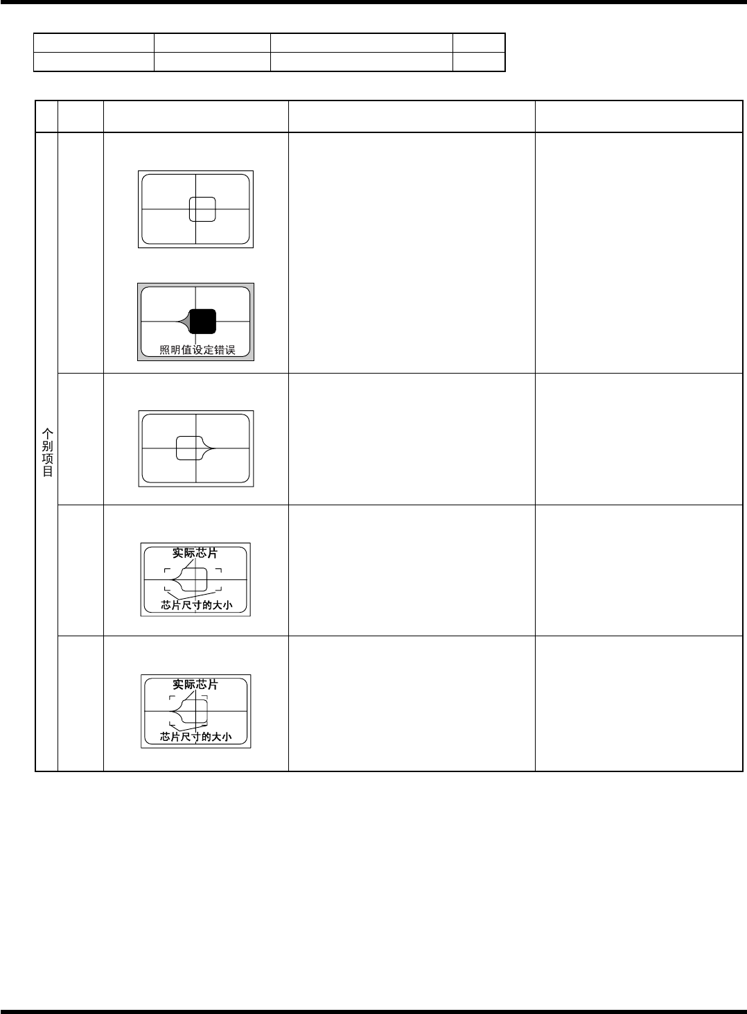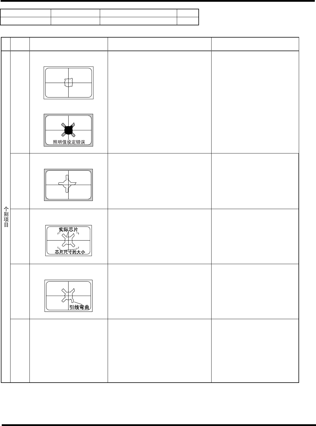 HGR40 附录 1.4 轮廓识别错误信 息 附录 1-105 参考 No. 形状编号 类别 92 ~ 93 5g 带角的钽电容器 等 1/2 ∗ 以下图的式样为 0 ° 。 代码 内容 原因 对策 1) 吸着错误、吸着异常 请确认吸着状态。 2) 部品异常 请检查部品的包装状态 。 20 (20) 特征点数在规定外 < 错误图像 > < 推断图像 > [ 规定值 ] 1 ~ 6 个 21 (15) 吸着角度异常…