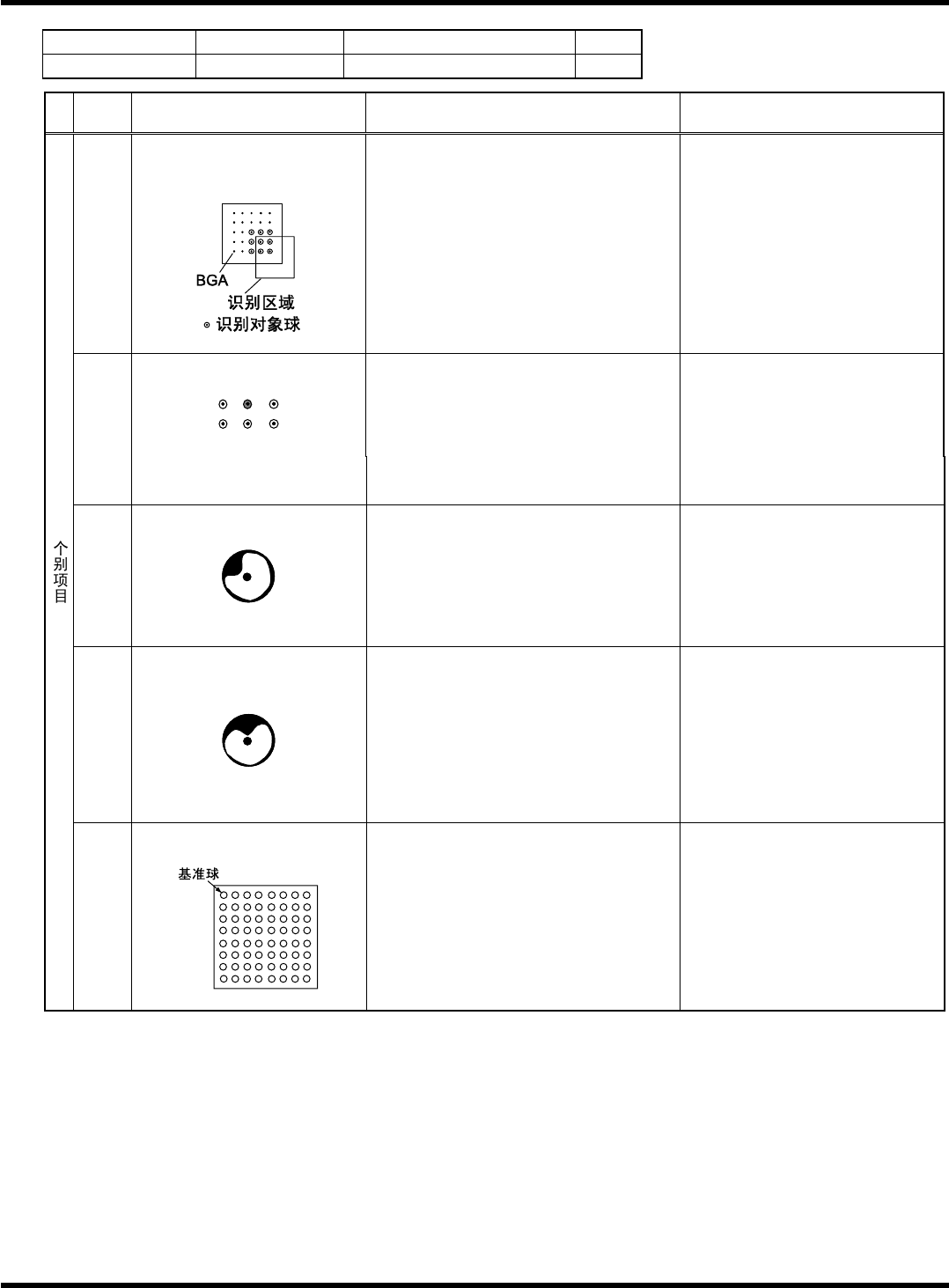 HGR40 附录 1.4 轮廓识别错误信 息 附录 1-124 参考 No. 形状编号 类别 222 4i 倒装芯片等 1/1 代码 内容 原因 对策 20 球检测个数异常 1) 检测的球数没有达到芯 片数据所指 定的数量。 请正确设定球图形。 (BGA 扩展数 据 ) 1) 检测的球位置超出芯片 数据所指定 的偏离容许范围内 请正确设定球位置。 (FC 扩展数据 ) 35 球检测位置异常 请确认对象部品 。 1) 识别角度超出容许范围…