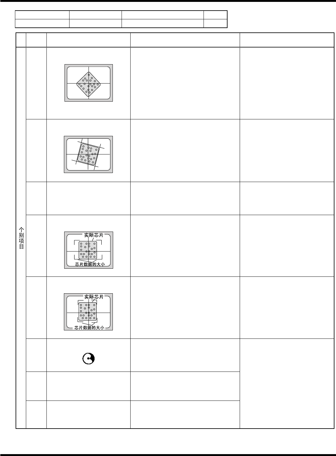 HGR40 附录 1.4 轮廓识别错误信 息 附录 1-125 参考 No. 形状编号 类别 237 ~ 238 4j FC-BGA 等 1/1 代码 内容 原因 对策 1) 超出可识别范围 ( 识别角度 ± 30[ ° ] 以内 ) 请确认式样角度。 ( 配置数据 ) 21 43 部品角度异常 < 错误画面 > 2) 吸着错误·吸着异常 请确认部品高度、 吸着位置、 吸着 偏移量、 使用吸嘴,使吸着状态更 趋稳定。 1) …