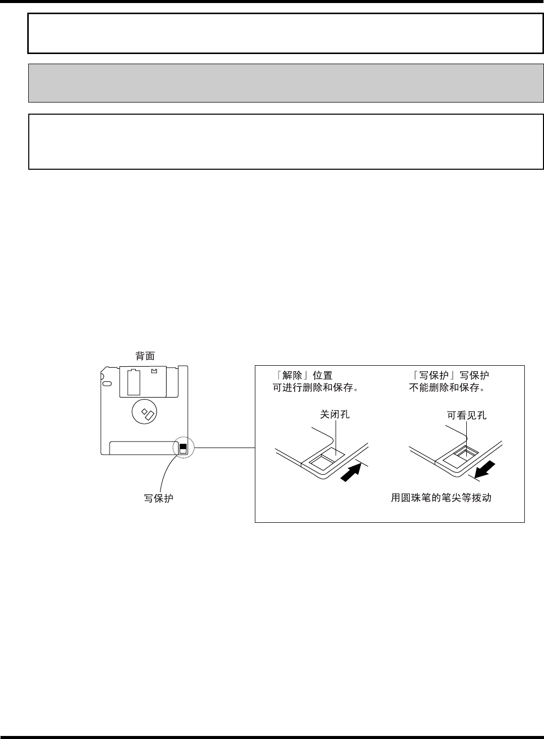 和数据,在此对软盘的保护和使用上的注意事项进行说明。