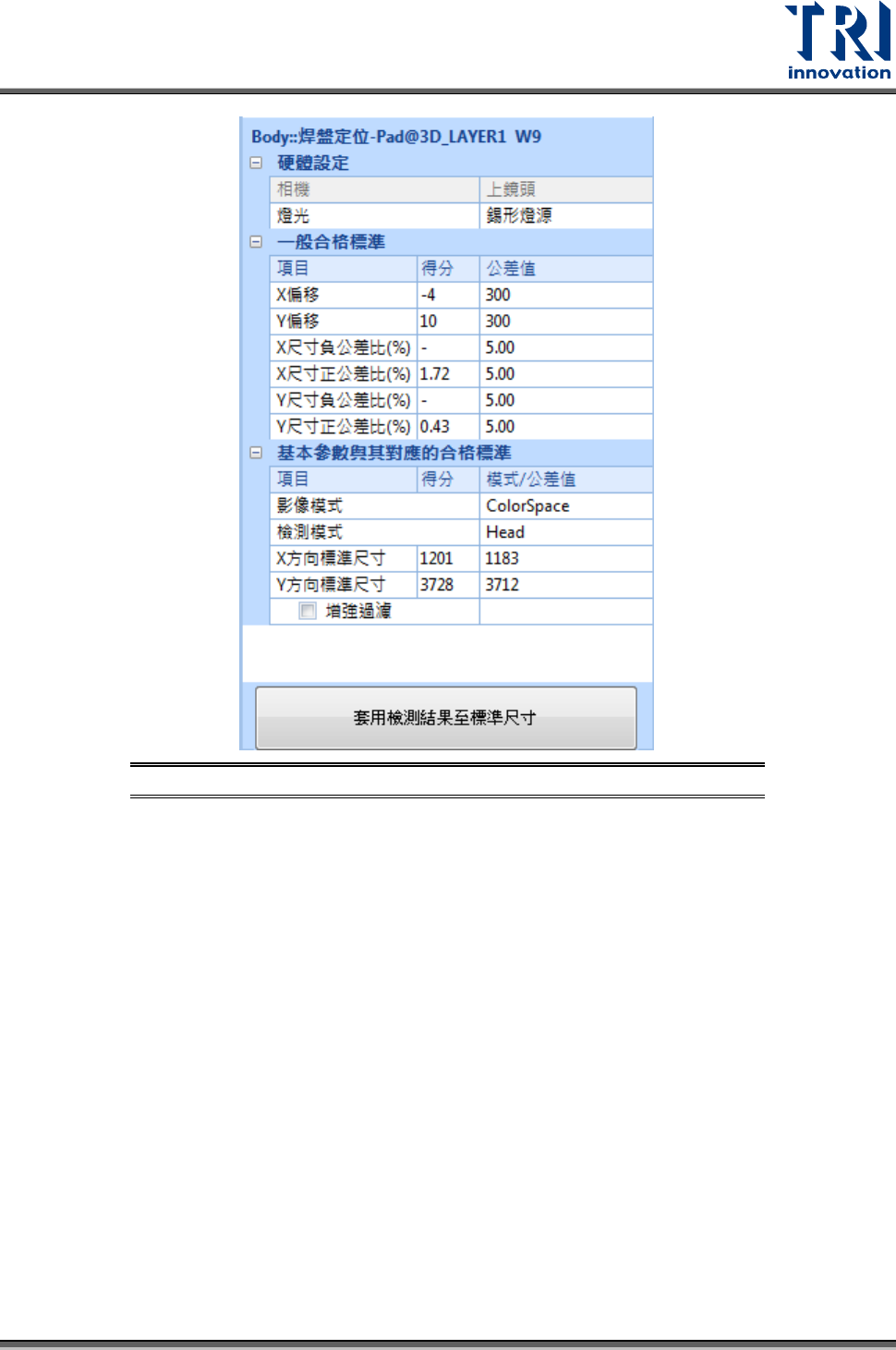 套用檢測結果至標準尺寸:將計算出來的 Pad 框大小結果設為標準值。