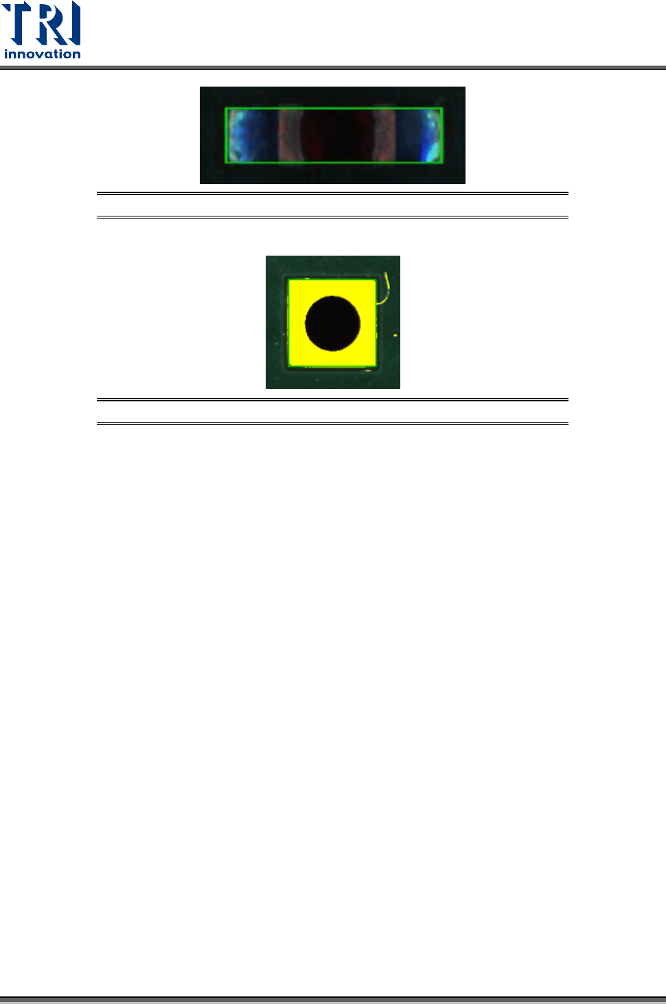 Test Research, Inc. 86 TR7500 SIII Series User G uide – Soft ware 圖 122 : Pad 框 – Head 模 式使用情況 Body :用於方型或圓 形的標記,如下圖所示。 圖 123 : Pad 框 – Body 模 式使用情況 X 方向標準尺寸:設定焊 盤在 X 方向的標準尺寸。 Y 方向標準尺寸:設定焊 盤在 Y 方向的標準尺寸。 增強過濾:增強偵測…