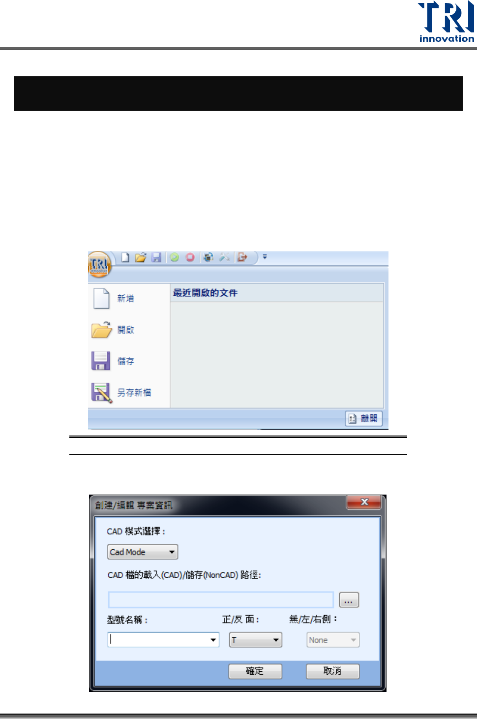 TRI 按鈕與快捷工具欄是為了方便使用者操作軟體介面所設計的。藉由這些按鈕,使用者可以