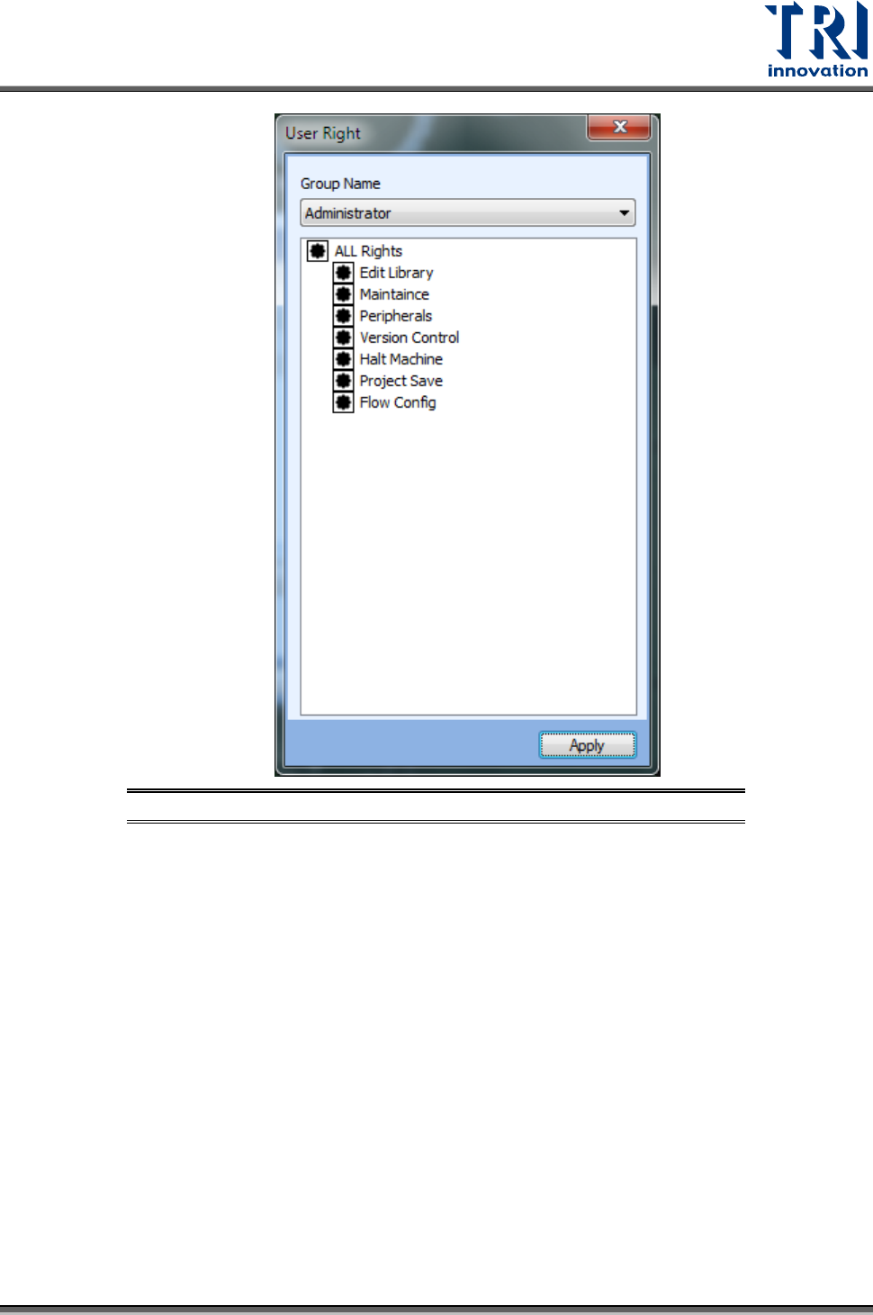 Test Research, Inc. TR7500 SIII Series User G uide – Soft ware 127 圖 173 :使用者權 限定義視窗
