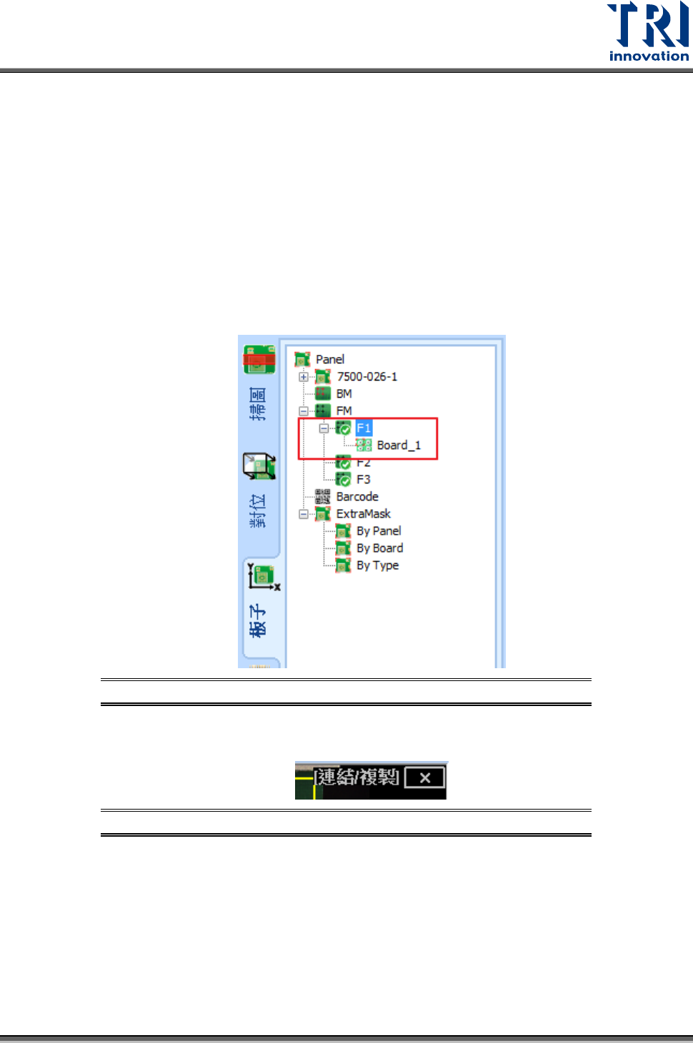 示其連結的板子,如下圖表示 F1 是小板 1 的各別對位標記(Local FM)。
