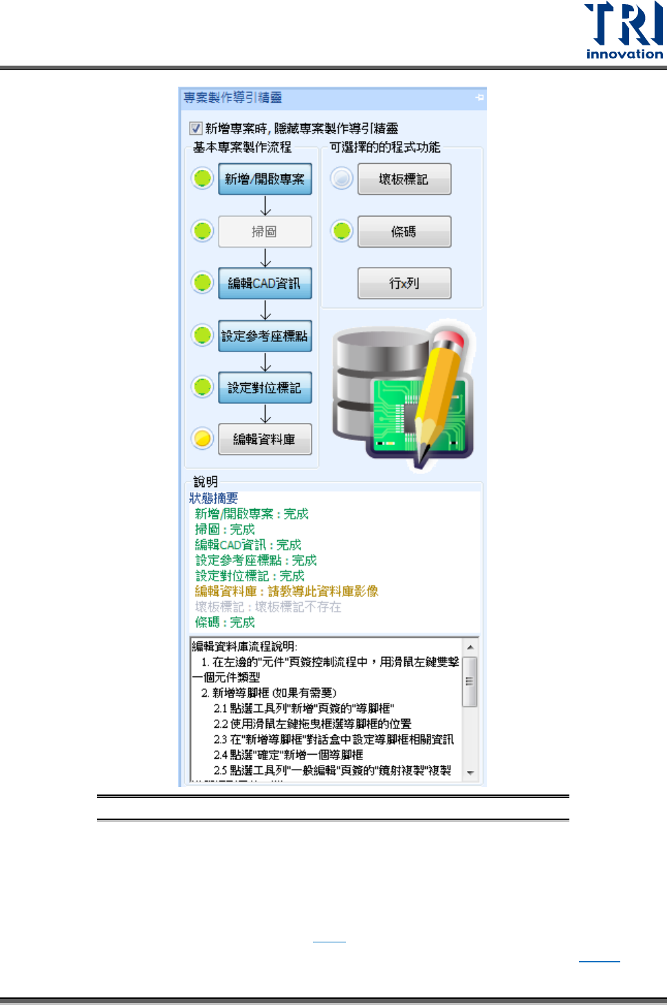 AOI 檔所產生的元件相對位置)。當 CAD 方格顯示為紫色時,代表目前專案尚未做完三個參考