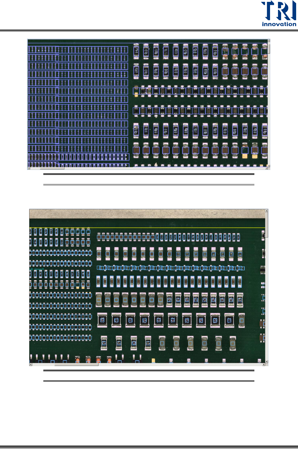 Test Research, Inc. 182 TR7500 SIII Series Us er Guide – Sof tware 另外,若是在大圖模式 下點選任何一個沒有元件 CA D 方格的位置,會進入到該位置的原圖 模 式,此時上方工具列頁 籤會顯示如 5.3.8 。 圖 274 :大圖模式 圖 275 :原圖模式 無論在大圖或者原圖模 式下,使用者皆可以使用 滑鼠中間的 滾輪來放大和 縮小畫面的 顯示。若 要在放大的畫面中移動…