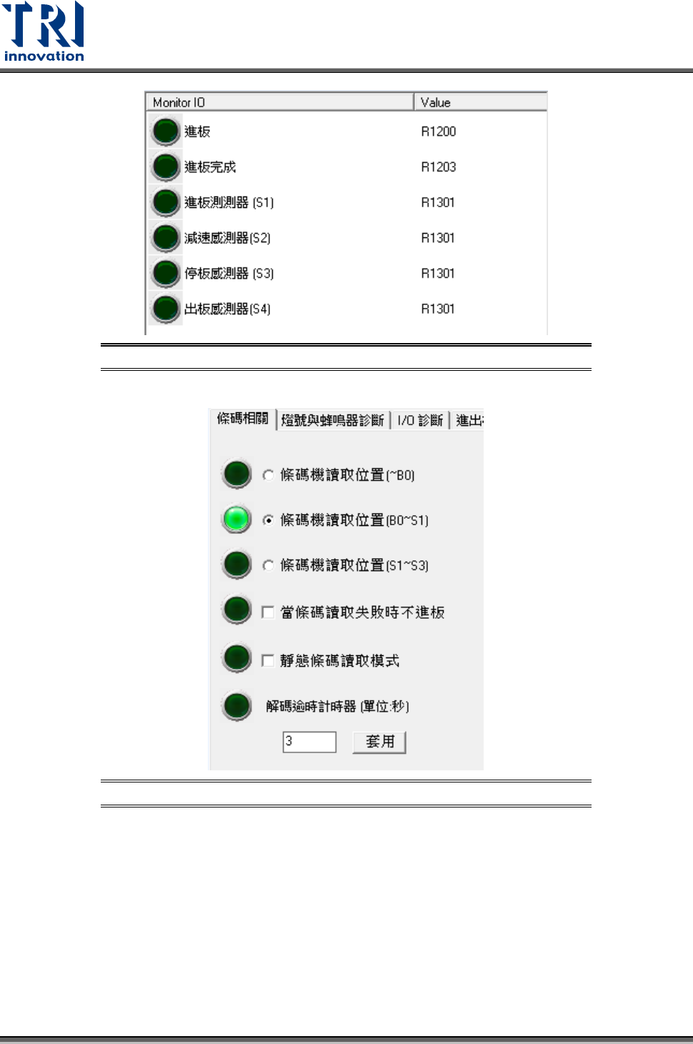 • 當條碼讀取失敗時不進板:板子碰到 B0 或 S1 後(依上面設定),軟體會去讀取硬體條