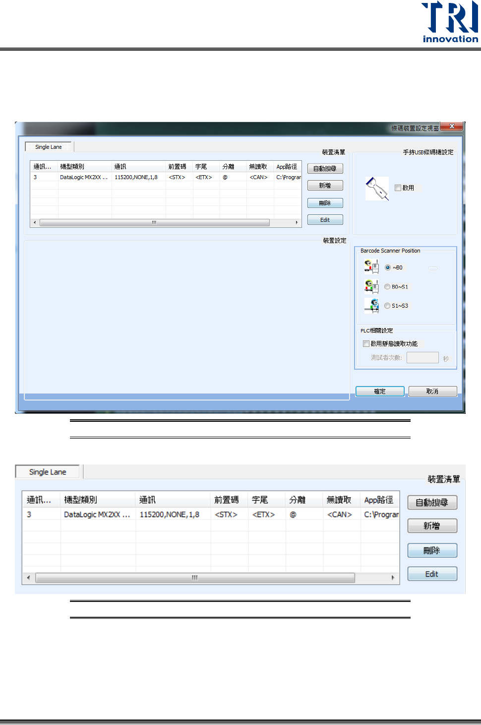 − 自動搜尋:可自動搜尋目前機台所接的條碼機數量及所對應的通訊連接埠,適用