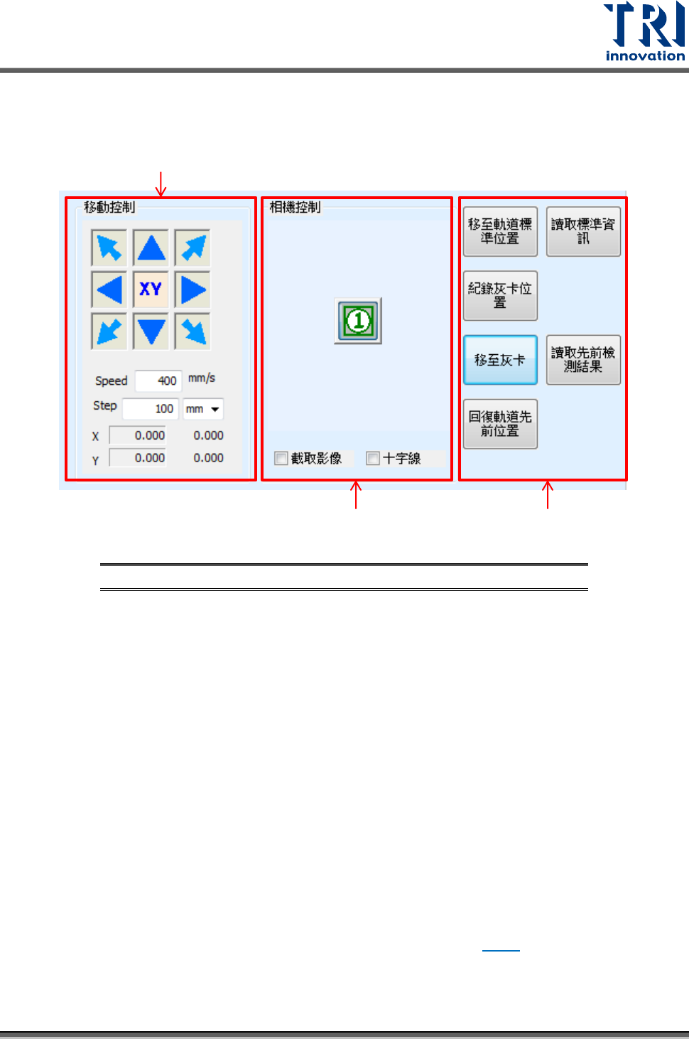 – 擷取影像:觸發 trigger 並在在影像顯示區顯示目前鏡頭所在位置的影像。