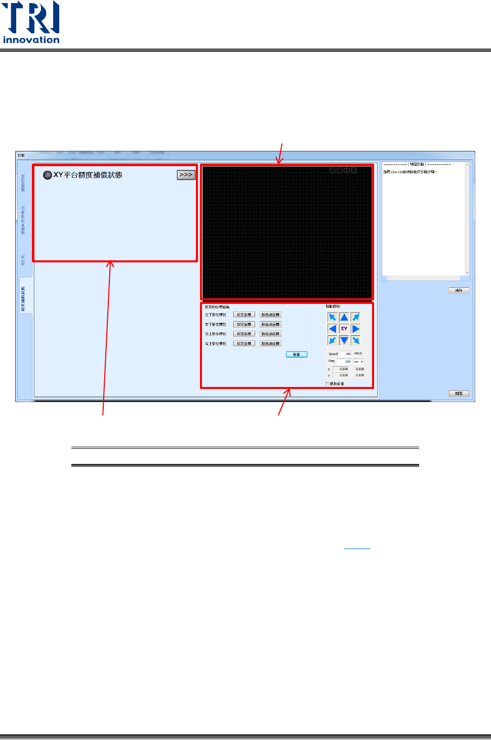 認軟體的平台精度補償功能是否正常。首先,使用者必須取得玻璃板四個角落的原始座標,