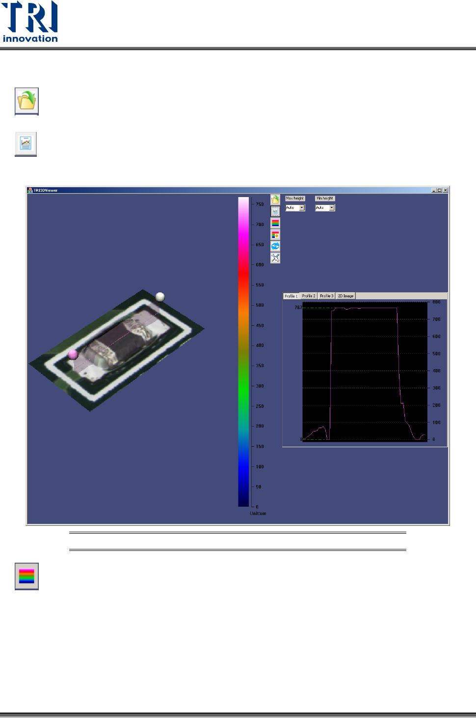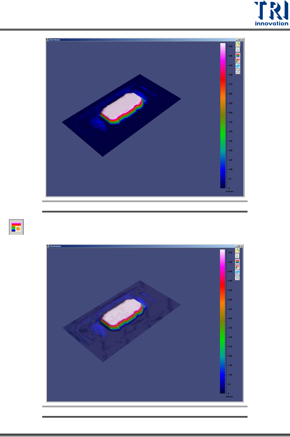 Test Research, Inc. TR7500 SIII Series User G uide – Soft ware 239 圖 356 : 3D 模組高 度剖面圖功能 :以色彩來呈現元件高 度的分布圖,並呈現反光 位置的鏡面 效果,如下圖 所示。 圖 357 : 3D 模組高 度剖面圖功能(鏡 面效果)