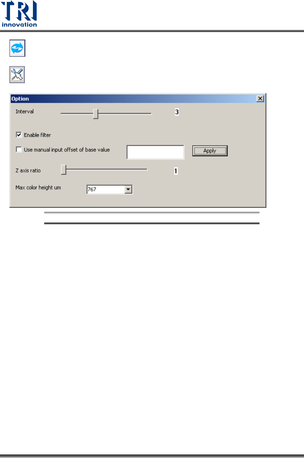 :顯示橫切面的高度剖面圖,如下圖所示。使用者可以用滑鼠拖曳圖球點來變更欲檢測的