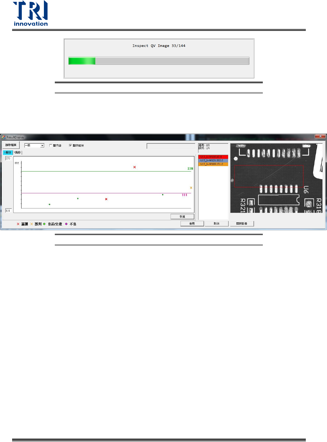 代表的是漏測的元件,黃色的叉叉代表的是誤判的元件。點選通過標準圖上的任何一點,