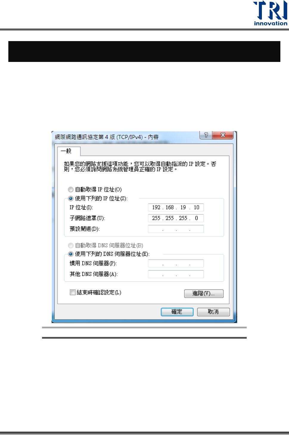 確認無限網際網路 LNC 的連線狀況。另外,預設的網際網路通訊協定第四版(TCP/IPv4)內容