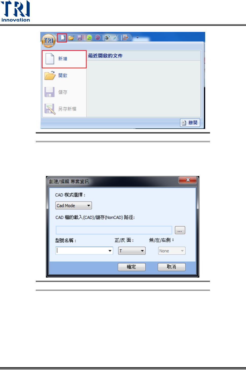 1) 在快捷工具列點選 或者點選 TRI 按鈕後選擇 “新增”。