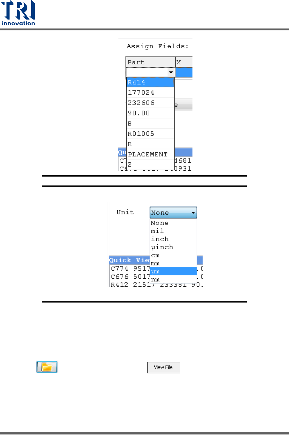Test Research, Inc. 14 TR7500 SIII Series User G uide – Soft ware 圖 16 : CAD 轉檔器 – CAD 格式編輯 – 步驟 7 8. 當內容被定義完成後, 請選擇所使用的單位。 圖 17 : CAD 轉檔器 – CAD 格式編輯 – 步驟 8 9. 當確認轉檔內容無誤後 ,按下 [Save Script] 來儲存 劇本或按下 [Sav e] 來儲存已編 輯的 CA D…