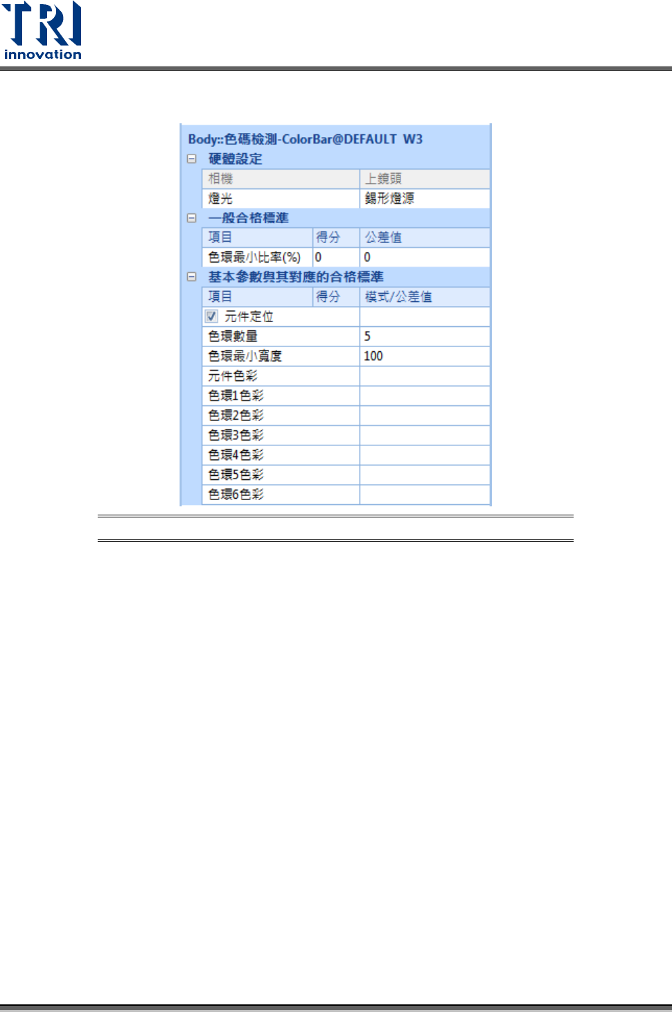 色環最小比率(%):在教導完本體顏色後,系統會自動計算各色環落入所有色環所計算