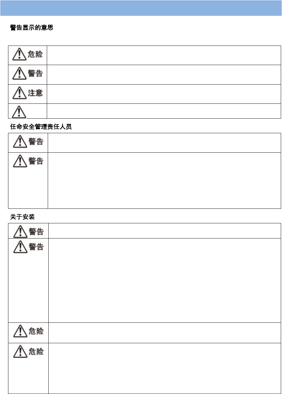 如果不遵守带有此指示的事项,就会引起极危险的状况(火灾等),其结果有发生