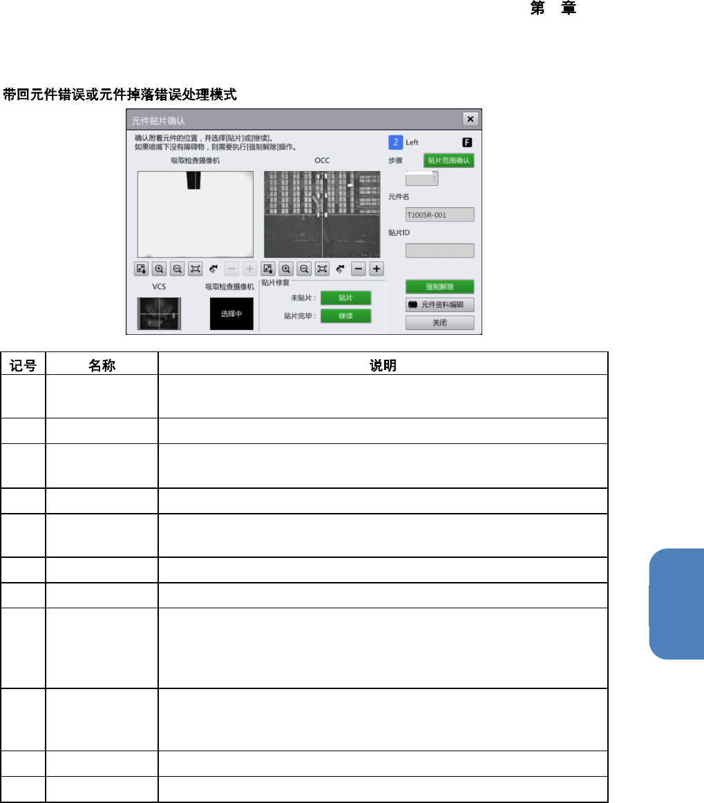 贴片修复 对于发生带回元件错误的元件,通过 (a) 的摄像机图像确认贴片状态,