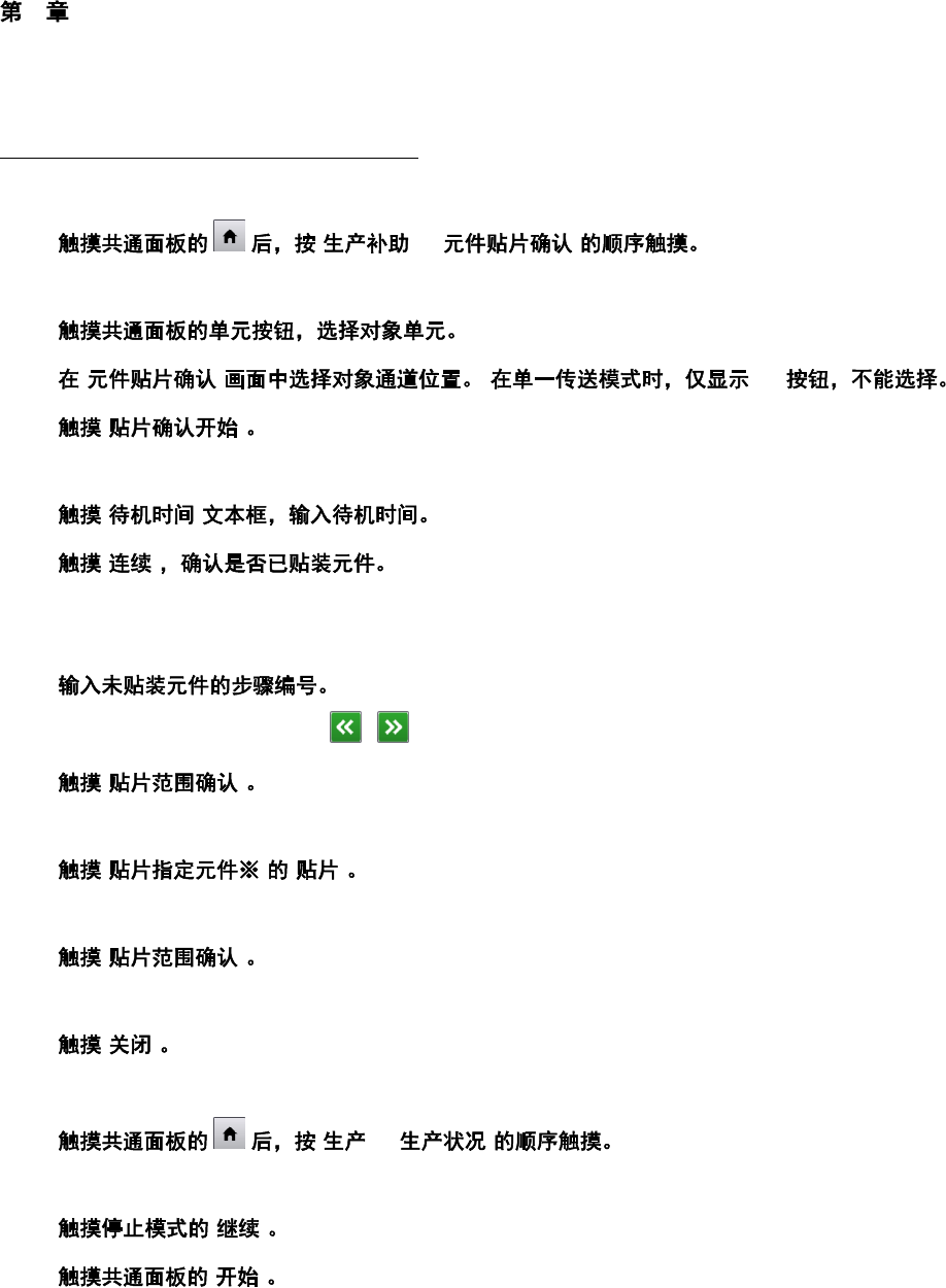 如果未贴片,则触摸[贴片]重新贴装元件,如果贴片完毕,则触摸[继续]