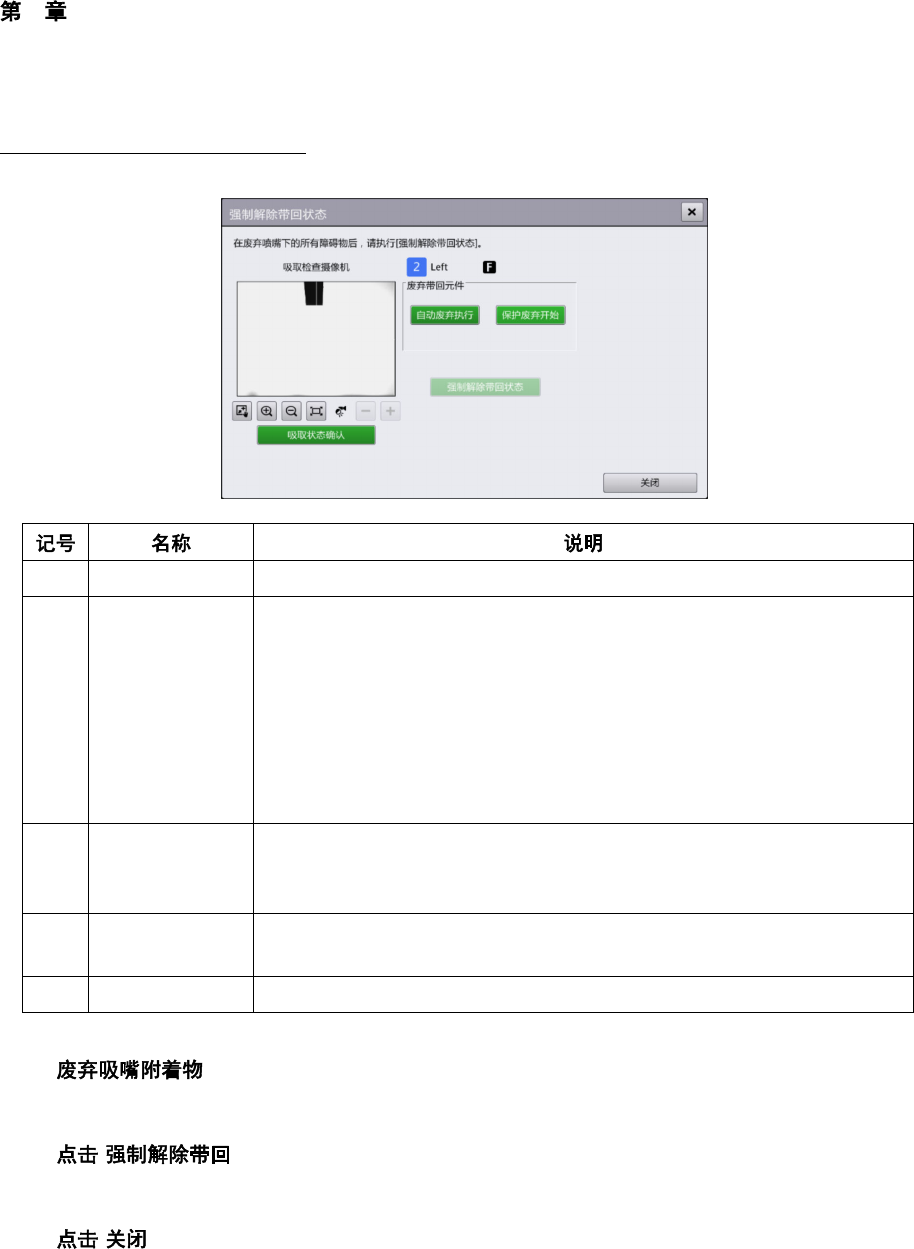4 操作篇 4-6 生产补助 120 [强制解除带回]对话框的操作 (a) 自动废弃执行 对发生了 带回错误的吸嘴执行元件废 弃动作后,解除元件吸取状态。 (b) 保护废弃开始 执行保护 废弃开始的处理后,显示切 换为保护废弃结束。 【保护废弃开始】 是为了手动清扫发生了 带回错误的吸嘴。 使左右的一次性更换台 车下降,解除安全护罩的锁 定,变为可手动开始元 件废弃作业的状态。 【保护废弃结束】 使左右的一次性更换台 车上升,锁定安全护…