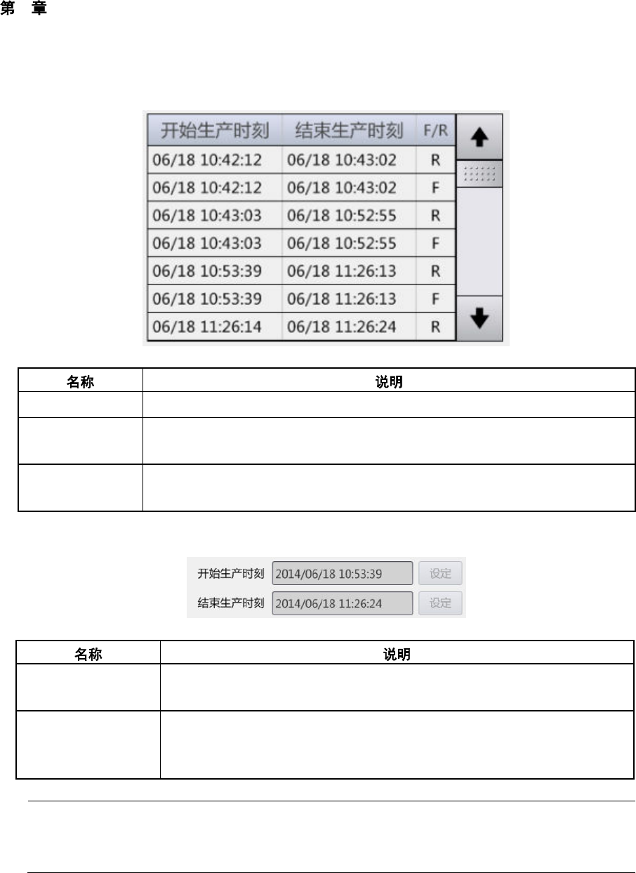 开始生产时刻 触摸后,生产管理信息列表中选择的项目开始生产时刻将设定为开