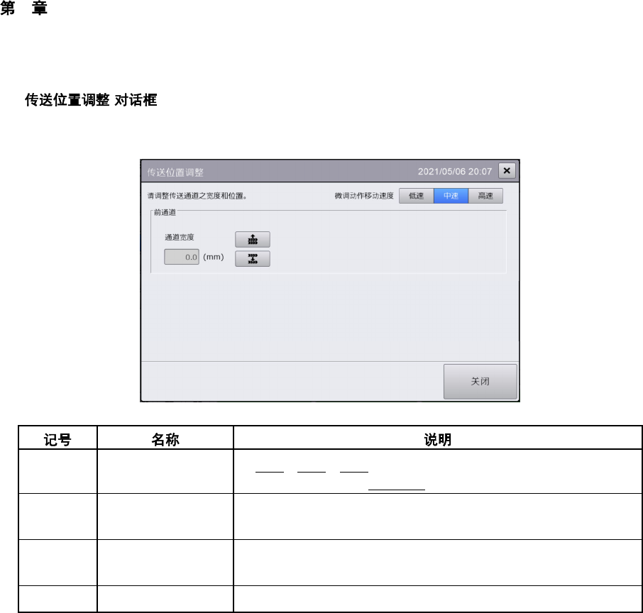 触摸[传送控制]画面的[传送位置调整],即显示[传送位置调整]对话框,可调整各轨道宽度方向的位置,