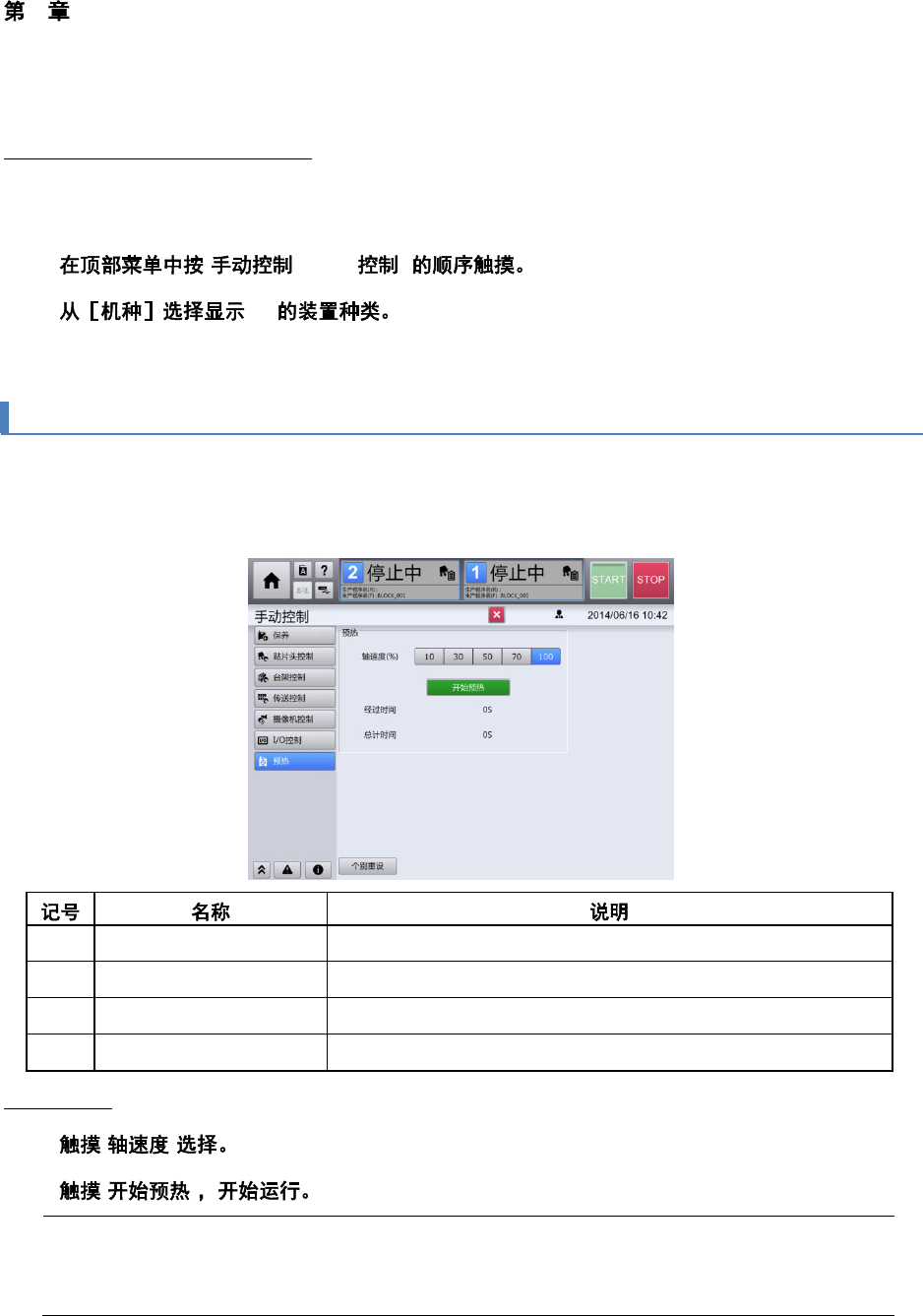 [预热]画面仅在用户级别为[MAINTENANCE(维护)]时才会显示。