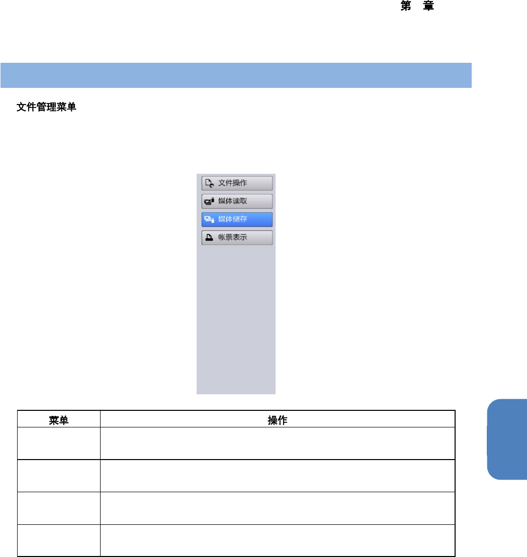 4 操作篇 4-10 文件管理 183 4 4-10. 文件管理 n 对生产程序,元件资料 库的输入输出进行管理。 触摸顶部菜单中的 [ 文件管 理 ] ,显示此菜单。 [ 文件管理 ] 在用户级别为 [SUPERVISOR (管理员) ] 或 [MAINTENANCE (维护 ) ] 时,才会显示此项。 文件操作 打开生产程序。 复制生产文件。 媒体读取 从 USB 存储设备中读取生产程序。 从 USB 存储设备中读取元件资料库 。 …