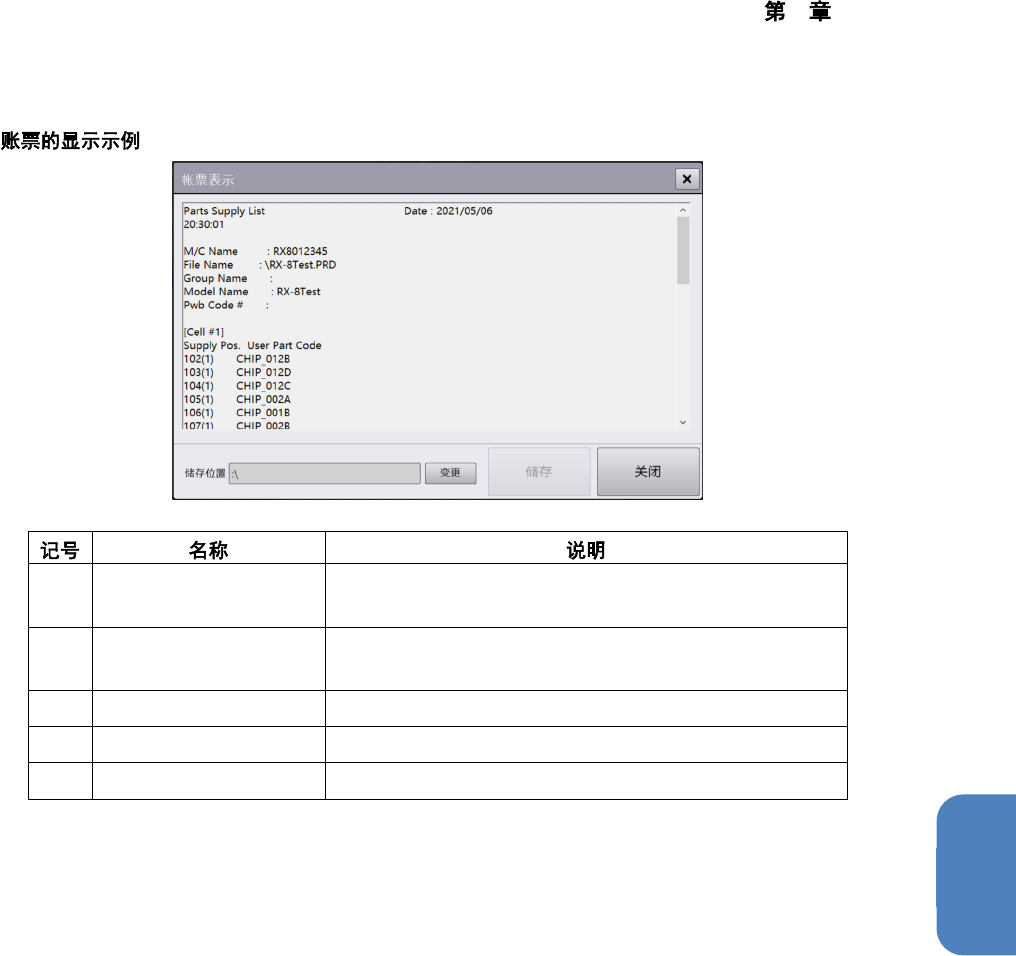 显示在生产中使用的元件名及元件信息的账票